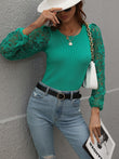 Lace Sleeve Round Neck Ribbed Top