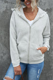 Lace Trim Zip-Up Hooded Jacket