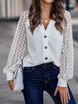 Lantern Sleeve V-Neck Button-Down Cardigan