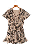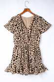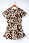 Leopard Flutter Sleeve Ruffle Hem Romper