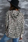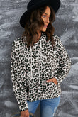 Leopard Print Drawstring Hoodie with Kangaroo Pocket