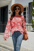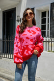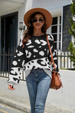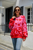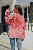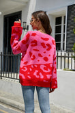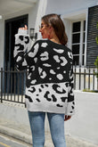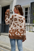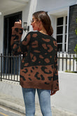 Leopard Ribbed Trim Dropped Shoulder Sweater