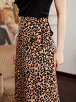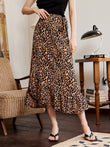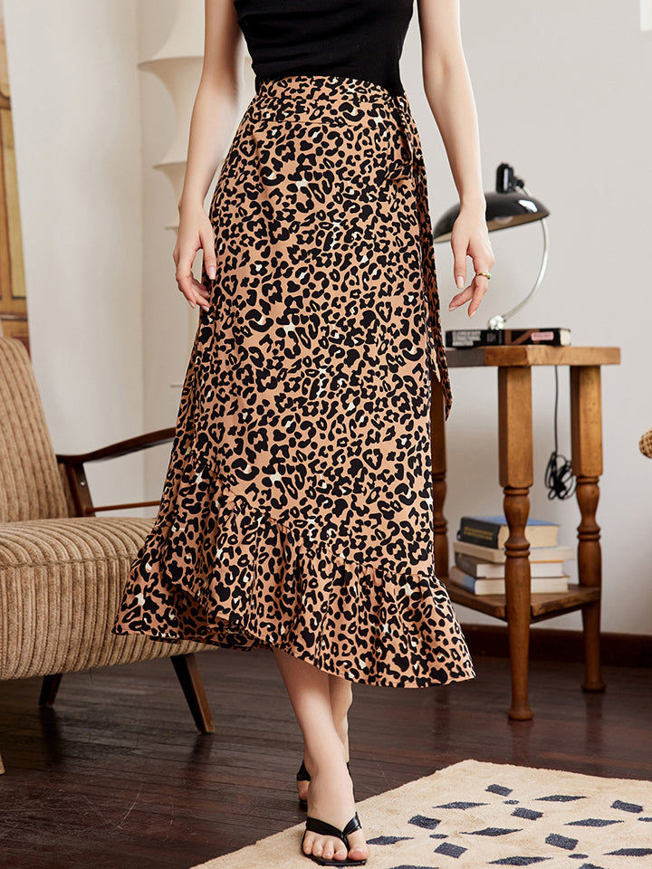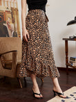Leopard Ruffle Hem Midi Skirt