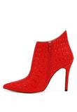 Concave Ankle Cut and pointed toe - this pair of stiletto boot has all the jazz which keeps winter look sharp. Crafted in woven textured leather, this dainty shoe has side zipper opening.