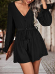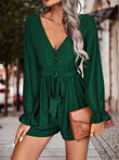 Long Flounce Sleeve V-Neck Romper