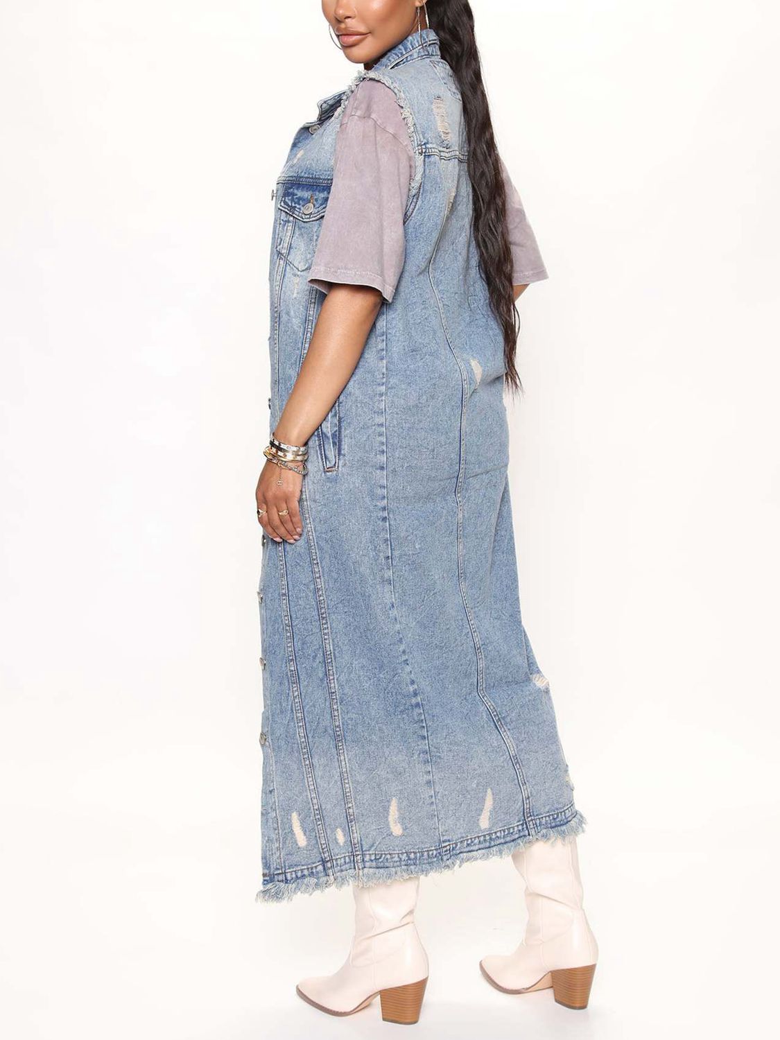 Long Sleeveless Denim Jacket