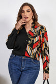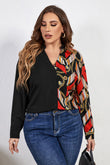 Melo Apparel Plus Size Contrast Color Notched Neck Shirt