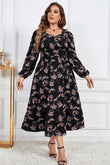 Melo Apparel Plus Size Floral Print Long Sleeve Midi Dress
