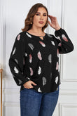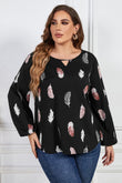 Melo Apparel Plus Size Printed Round Neck Long Sleeve Cutout Blouse