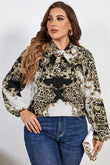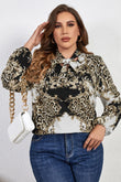 Melo Apparel Plus Size Printed Tie Neck Long Sleeve Blouse