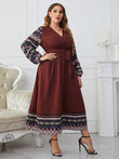Melo Apparel Plus Size Surplice Neck Tie Belt Balloon Sleeve Dress