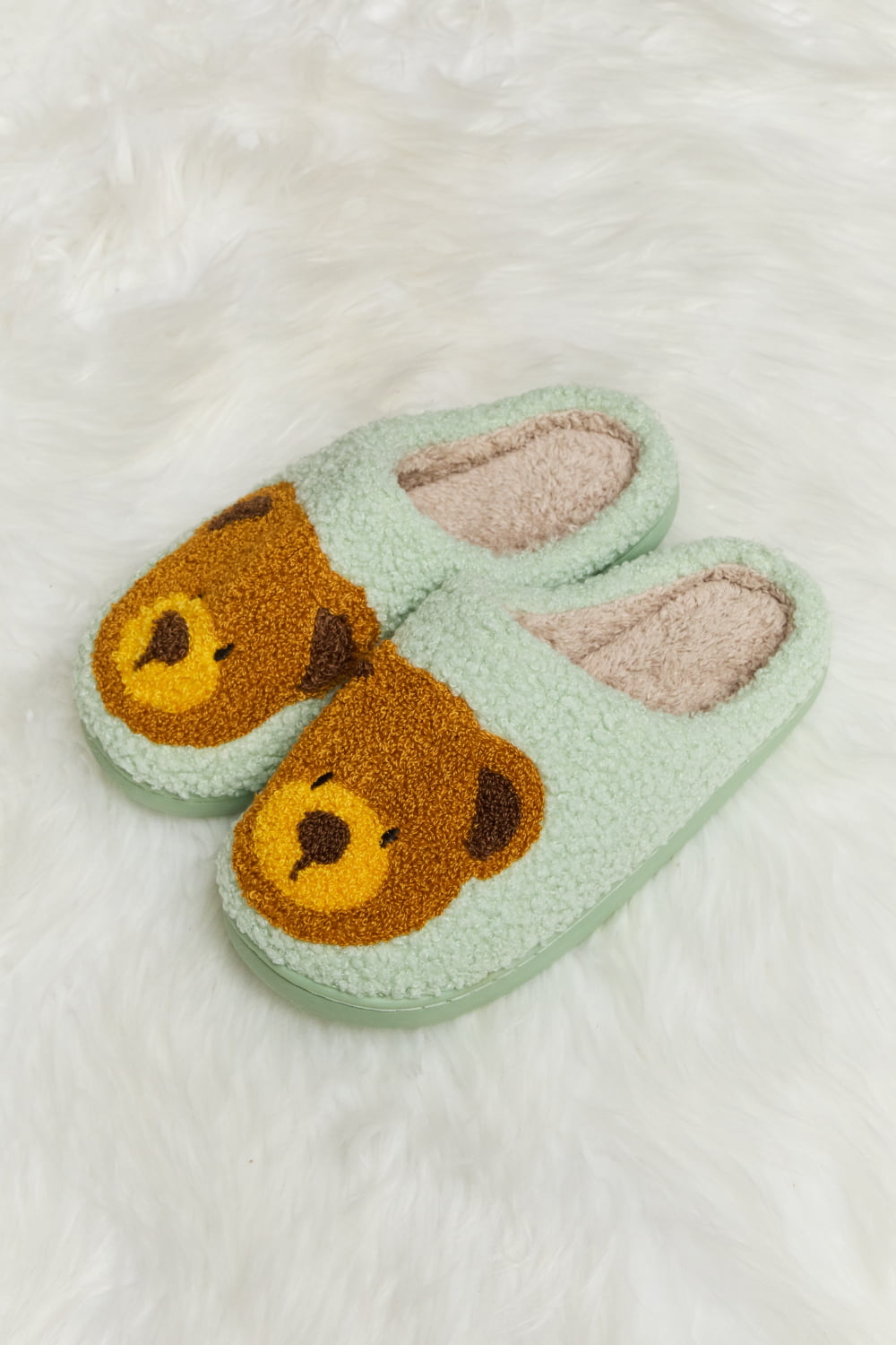 These adorable slippers feature a delightful teddy bear print, adding a touch of cuteness to your cozy indoor moments. Crafted from ultra-soft plush material, they provide a gentle, soothing feel to your feet, making them ideal for relaxation and lounging. The slip-on design ensures easy wearing, while the sturdy yet flexible sole offers excellent support and traction. Treat yourself or someone special to these irresistibly snug and charming slippers for a delightful winter experience.