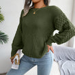 Mixed Knit Round Neck Dropped Shoulder Sweater