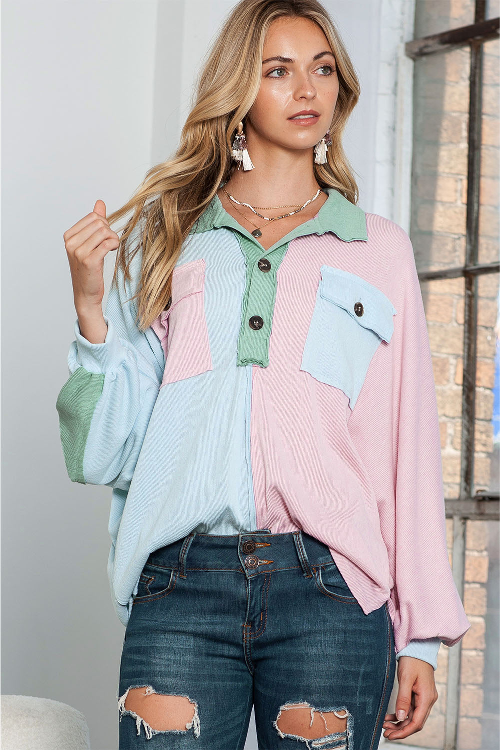 Multicolor Buttoned Long Sleeve Blouse