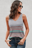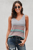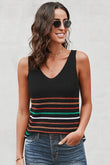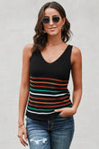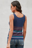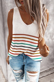 Feel good in this lightweight, breathable knit tank punctuated with cute multi-stripe details. Perfect for layering under a jacket or a cardigan.