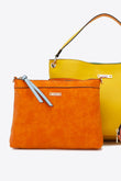 Made from high-quality, smooth and suede eco-leather, this handbag is the perfect blend of style and sustainability. With a single 6.5" drop top eco-leather handle, this handbag is designed to be worn comfortably on your arm or carried in your hand. The main zipper magnetic clasp closure ensures the security of your belongings, while the two open side pockets provide easy access to your essentials.Featuring a Nikky gold-toned logo nameplate at the front, this handbag is an unmistakable symbol of sophistication and style. The structured silhouette with flat base gives this bag a modern and sleek look, perfect for any occasion.