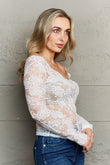 This exquisite piece is designed to accentuate your feminine charm and make a lasting impression wherever you go. This top features delicate lace fabric that creates a beautiful textured pattern, adding a touch of sophistication to your ensemble. The off-shoulder design showcases your graceful neckline, while the fitted silhouette accentuates your curves in all the right places, providing a flattering and comfortable fit. The long sleeves offer an alluring balance of coverage and allure, perfect for both daytime and evening wear. The scalloped V neckline adds a romantic and unique touch, drawing attention to your collarbone and framing your face beautifully. It's a versatile piece that can be effortlessly dressed up or down, making it suitable for various occasions. Whether you're attending a cocktail party, a date night, or a special event, this top is sure to make you the center of attention. Pair it with tailored trousers or a chic skirt for a sophisticated look, or opt for jeans and heels for a more casual yet stylish ensemble. The possibilities are endless. We've ensured that this top not only looks exquisite but also feels amazing against your skin. The premium quality lace fabric is soft and breathable, allowing you to move with ease and comfort throughout the day or evening. It's a timeless addition to your wardrobe that you'll cherish for years to come.