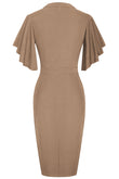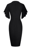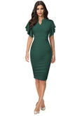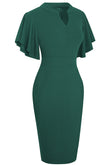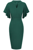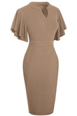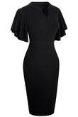 Notched Neck Flutter Sleeve Pencil Dress