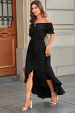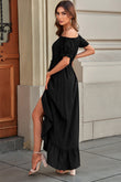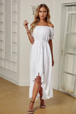 Off-Shoulder Drawstring Waist Ruffled High-Low Dress