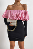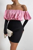 Off-Shoulder Puff Sleeve Mini Pencil Dress