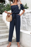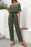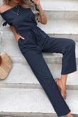 Off-Shoulder Tie Cuff Jumpsuit with Pockets