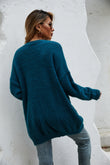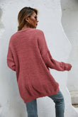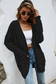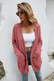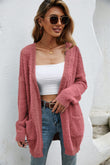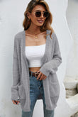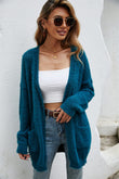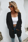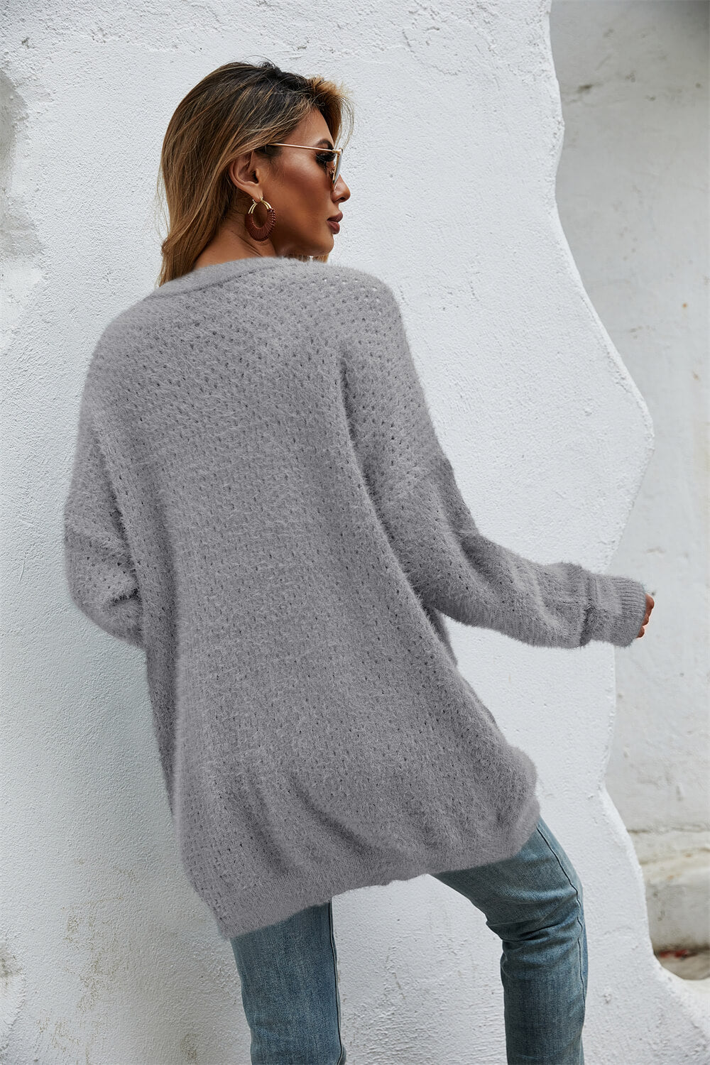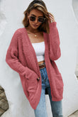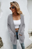 Open Front Openwork Fuzzy Cardigan with Pockets