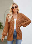 Open Front Ribbed Trim Cardigan