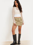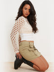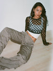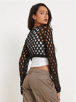 Openwork Long Sleeve Cropped Knit Top