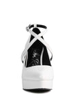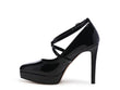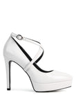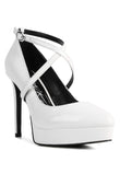 High Heeled Stiletto sandals in patent PU with cross straps and ankle buckle fastening, keep feet secured, and looks all glam.
