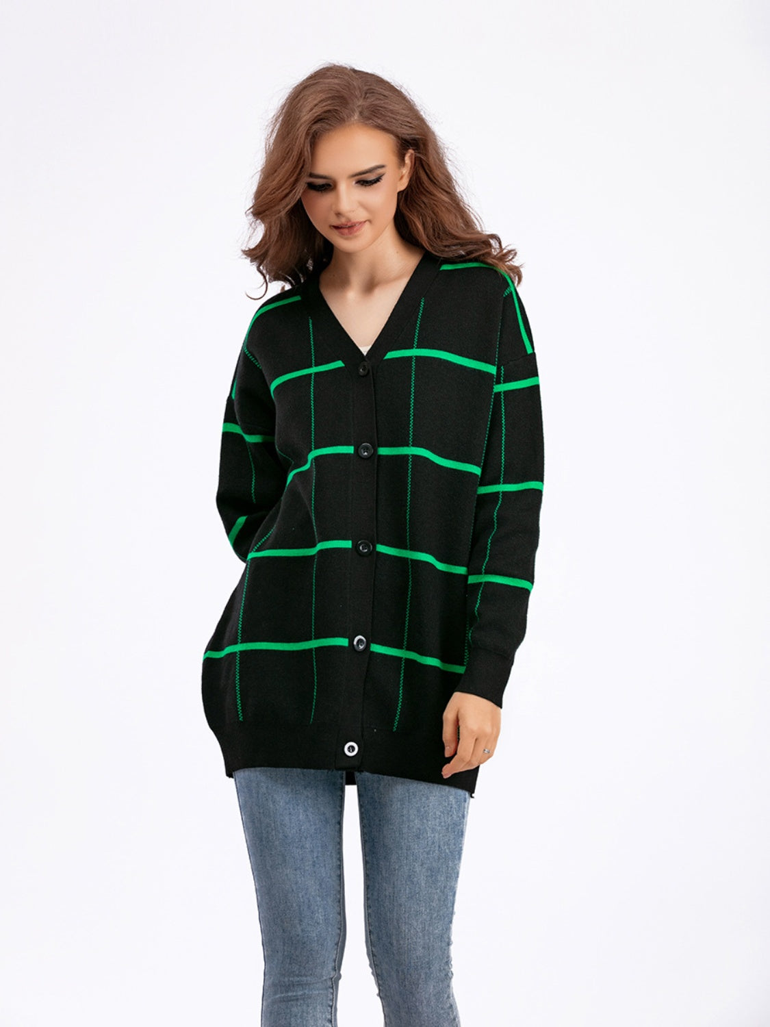 Plaid Button Down Drop Shoulder Cardigan