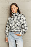 Plaid Collared Neck Long Sleeve Jacket