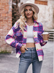 Plaid Dropped Shoulder Collared Jacket