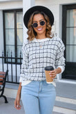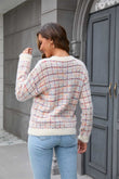 Plaid Round Neck Long Sleeve Pullover Sweater