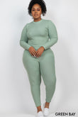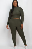 - Plus Ribbed Mock Neck Long Sleeve Top & Leggings Set
