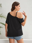 Plus Size Asymmetrical Neck Ruched Short Sleeve Blouse