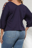 Plus Size Cutout Three-Quarter Sleeve Blouse