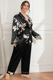 Plus Size Floral Belted Robe and Pants Pajama Set