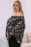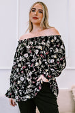 Plus Size Floral Frilled Off-Shoulder Blouse