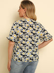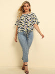 Plus Size Floral Round Neck Tie Hem Blouse