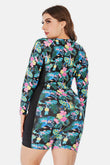 Plus Size Floral Long Sleeve One-Piece Swimsuit