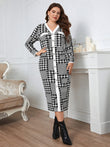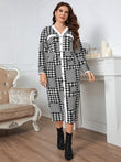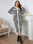 Plus Size Houndstooth Button-Down Long Sleeve Dress