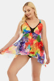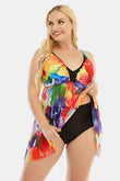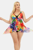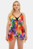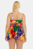 Plus Size Printed Spaghetti Strap V-Neck Two-Piece Swim Set