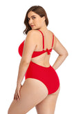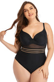 Plus Size Spliced Mesh Tie-Back One-Piece Swimsuit