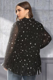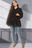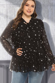 Plus Size Star Print Tie-Neck Peplum Blouse