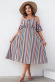 Plus Size Striped Cold-Shoulder Dress