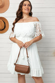 Plus Size Tassel Tie Spliced Lace Off-Shoulder Dress