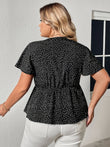 Plus Size V-Neck Front Bow Flutter Sleeve Blouse