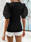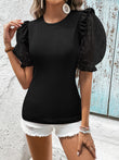 Polka Dot Flounce Sleeve Round Neck Top