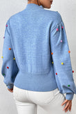 Pom-Pom Trim Mock Neck Long Sleeve Pullover Sweater