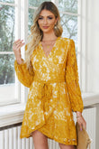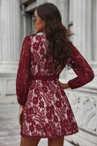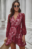 Pompom Trim Puff Sleeve Belted Lace Dress